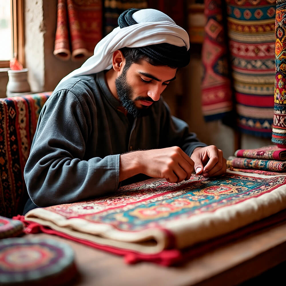 Mientras nos despedíamos, me dijo que regresaría más tarde con el objeto de supervisar mi labor, situación para mí insólita en tantos años de oficio, pero que acepté sin oponerme. Ni bien se retiró, una serie de pensamientos comenzaron a debatirse en mi mollera. Estaba perplejo. Había recibido demasiados estímulos en tan breve tiempo que las ideas fluían en cascada, con tal desconcierto que no podía anticipar mis reacciones. Elevé mis brazos para agradecerle a Alá el destino que me había reservado. Eso me tranquilizó un poco. Sentía una opresión en el pecho y la urgente necesidad de salir a tomar aire fresco. Me fui a caminar por los alrededores del mercado. Al llegar al sitio donde arrojan sus desechos los canteros, se me ocurrió calcular con la ayuda de guijarros, cuánto obtendría como paga una vez finalizado el bordado. Deposité una a una las piedritas sobre la arena, en un espacio que alisé con mis babuchas, las agrupé por decenas y las conté.