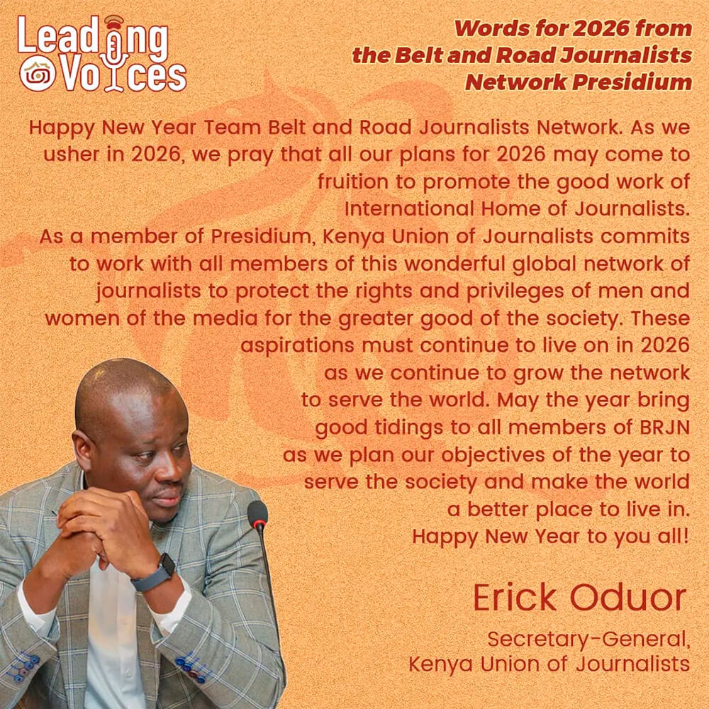 He Ping, presidente de la Asociación Nacional de Periodistas de China (ACJA) y miembro del presidium de la Red de Periodistas de la Franja y la Ruta (BRJN), transmitió sus saludos por el Festival de Primavera a periodistas y amigos de los medios de comunicación de todo el mundo. A continuación, el